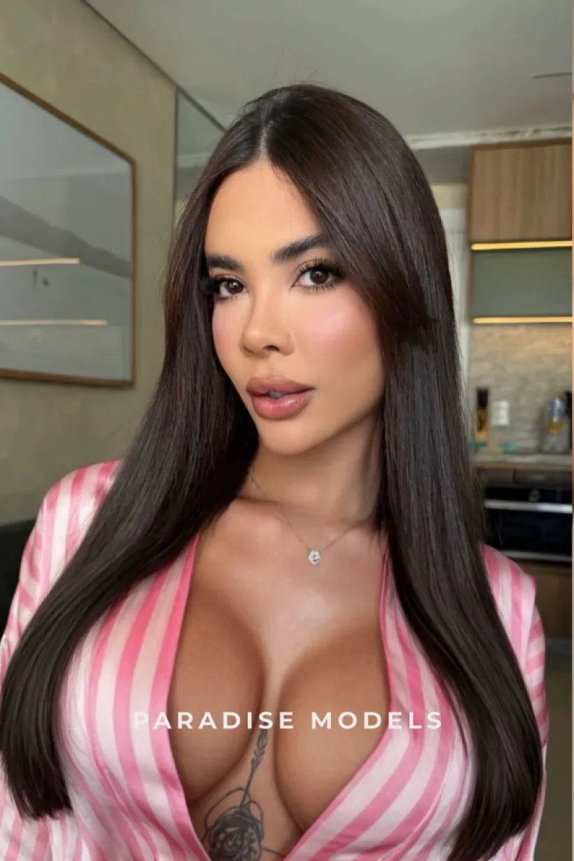 Ganimee is a captivating 25-year-old Brazilian beauty with a petite yet curvy silhouette that instantly draws attention. Standing at 158 cm, she combines softness with confident femininity, her brunette hair and warm brown eyes creating a sensual, inviting look. Her enhanced busty 34D figure highlights her curves beautifully, giving her a striking and memorable presence.